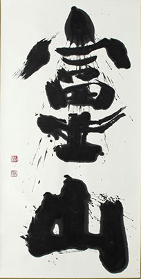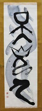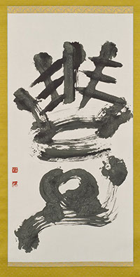 伊勢神宮で揮毫したためか、神様が冠をかぶっているかのよう。伊勢神宮外宮は、豊受大御神を祀っている。豊かさの象徴であるこの神に思いを馳せながら、「豊かさ」とは何か、いまいちど考えてみるのもよいかもしれない。