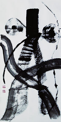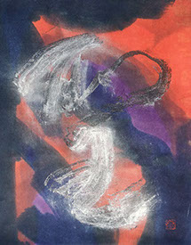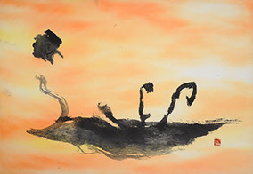 イスラエルにて揮毫。本作は海外ではとても人気で、人によって自由な解釈がなされる。どこか叙事詩的な雰囲気をもち、ノアの方舟とも、神が降りてきた瞬間とも、受精の瞬間ともいわれている。