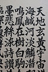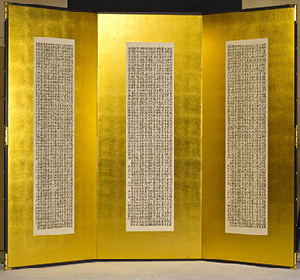 三体千字文とは、応神天皇により皇子(のちの仁徳天皇)の教育係として迎えられた王仁博士が、百済から論語とともに日本に持ち込み、帝王学の教育書としたもの。2006年小林芙蓉が韓国・王仁博士資料館に千字文の書を寄贈、韓国の方々に「千字文が帰ってきた」と大変喜ばれた。その後、霊岩郡守および霊岩郡郷土祭り推進委員会長より感謝状が贈られた。